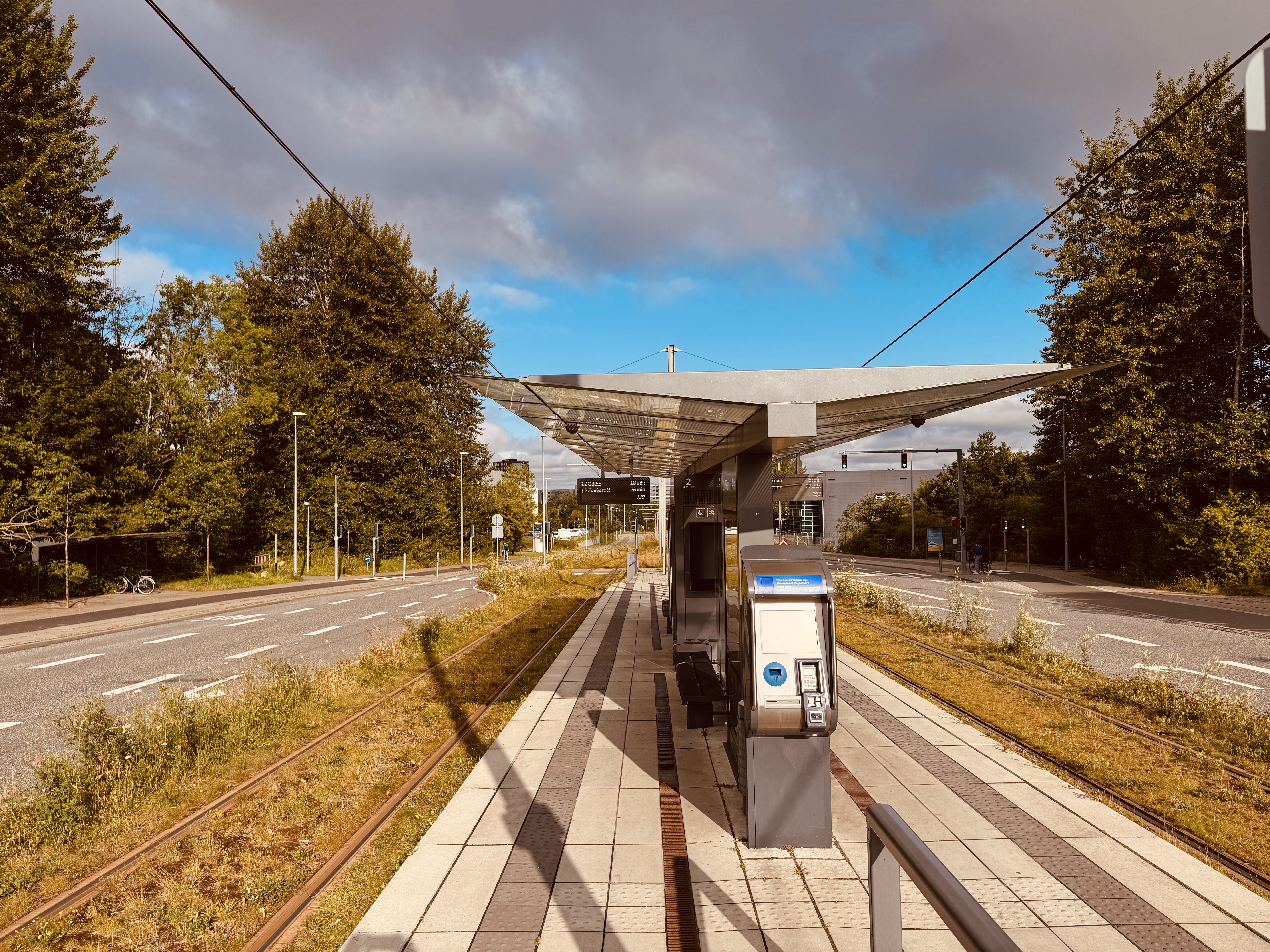 Midt på perronen er der en simpel overdækning, der beskytter de ventende passagerer mod regn og sol. Der er desuden bænke til rådighed samt en rejsekort-billetautomat, hvor man kan købe billetter og checke ind. Stationen er designet med fokus på enkelhed og funktionalitet og sikrer, at passagererne kan få en behagelig oplevelse, mens de venter på letbanetoget.Opland og Nærområde