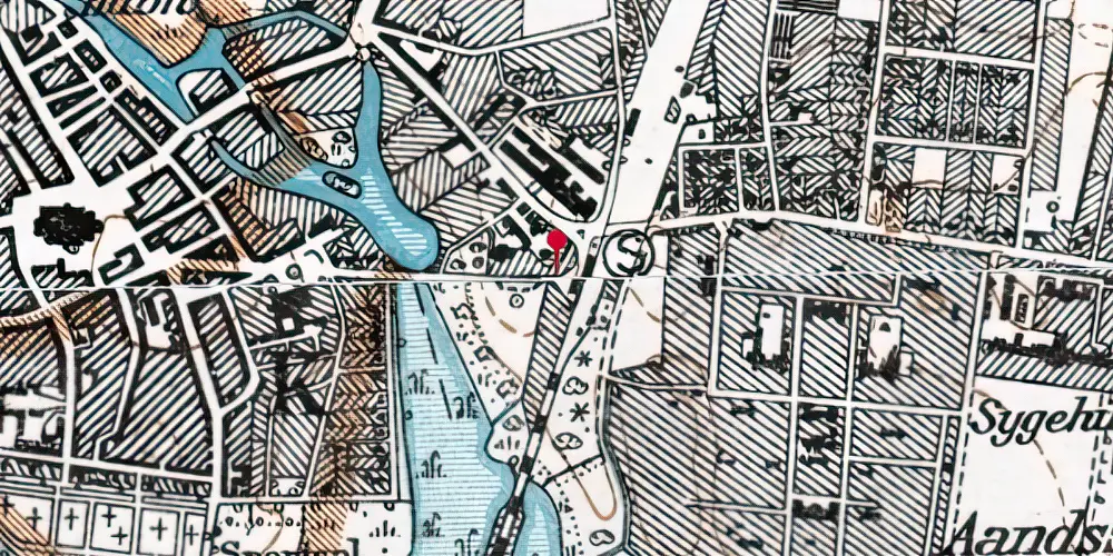 Kort over Ribe Station - Kilde: Indeholder data fra Styrelsen for Dataforsyning og Effektivisering, skærmkortet, WMS-tjeneste via datafordeler.dk (Lave Målebordsblade 1901-1971)