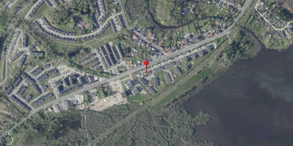 Kort over Lysbro Station - Kilde: Indeholder data fra Styrelsen for Dataforsyning og Effektivisering, skærmkortet, WMS-tjeneste via datafordeler.dk (Ortofoto forår)
