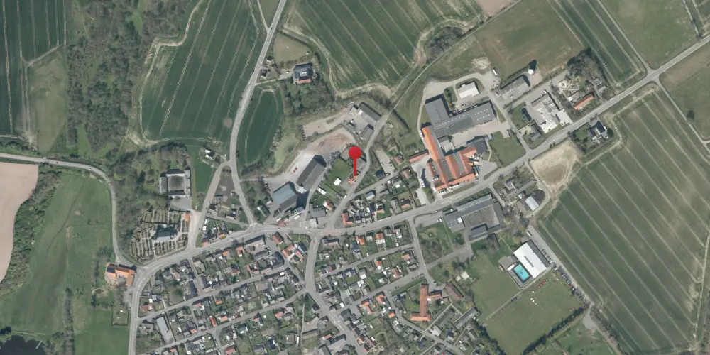 Kort over Klemensker Station - Kilde: Indeholder data fra Styrelsen for Dataforsyning og Effektivisering, skærmkortet, WMS-tjeneste via datafordeler.dk (Ortofoto forår)